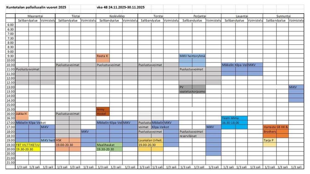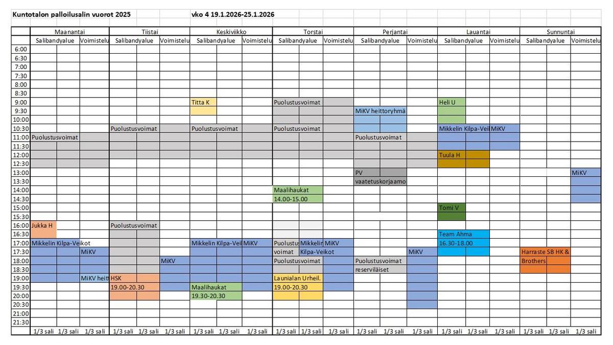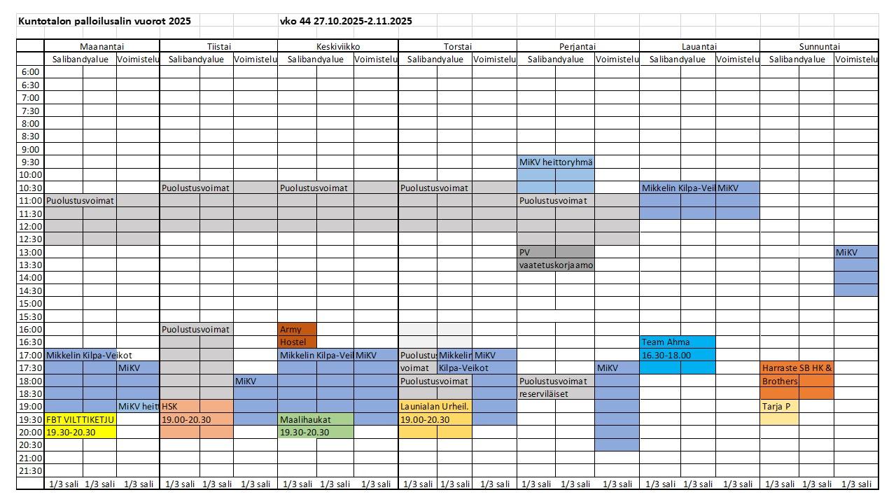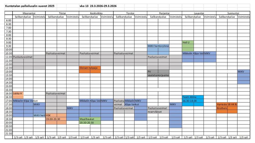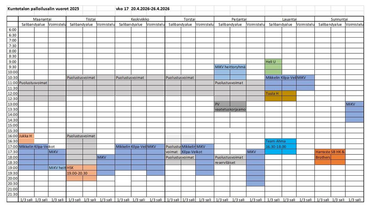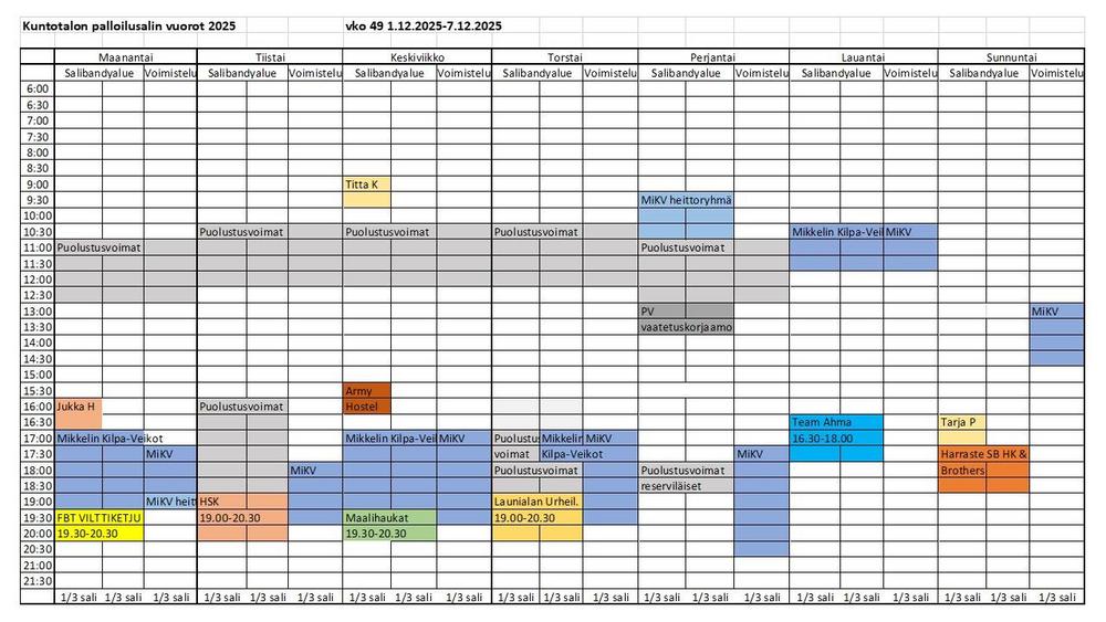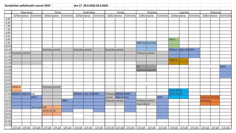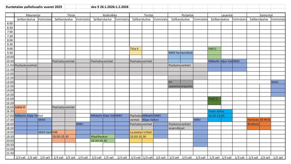 Kuntotalon palloilusalivuorot